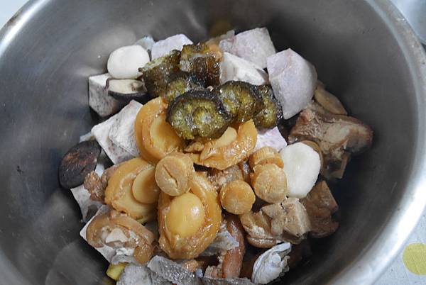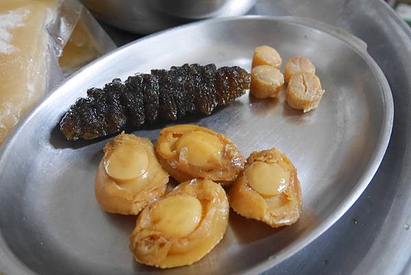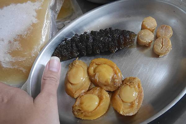 2.依序放上澳洲鮑魚 干貝 以及 海參 在最上層