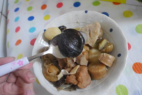像在我娘家 會加入白菜 魚皮 香菇 豬肉 栗子等等 並用瓷甕隔水加熱