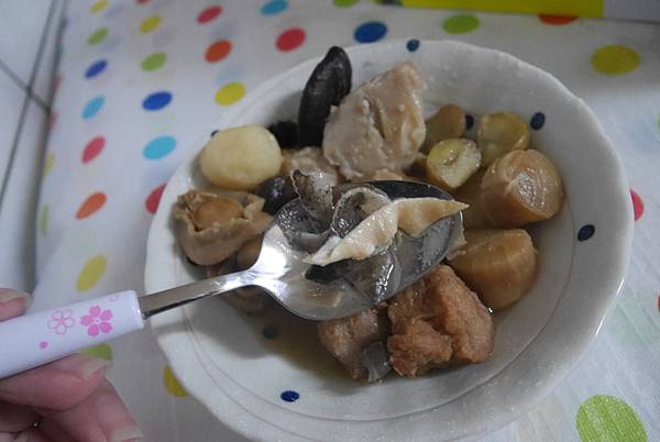 先來一塊海參 煮完心得是不要切太小塊 會找不到阿~!!!