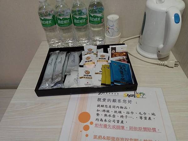 沐浴用品是伊必朗的 還算大廠牌 還有放上一張公告 有些東西是不能拿取的