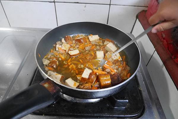 加入你要吃的量 煮滾紅蘿蔔絲熟就可以配飯