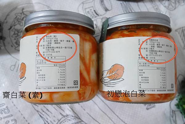 左側的齋白菜視覺上比較沒這麼紅,而初戀泡白菜則比較鮮豔