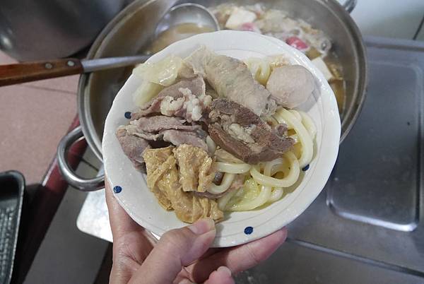 等湯滾了,順手把烏龍麵給燙起來等等配湯一起吃