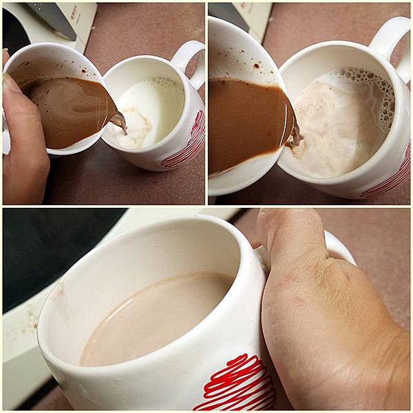 沖泡後的巧克力飲還可以混入熱鮮奶降低甜度大份量更滿足