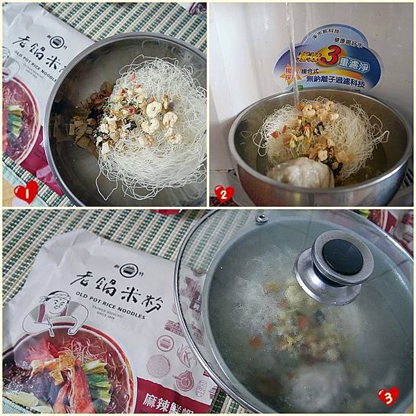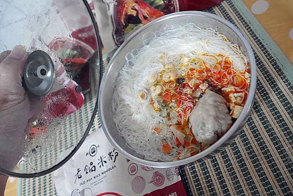 1.米粉及配料包加入 ((只有配料包歐!!!可不快手快腳的通通加進去