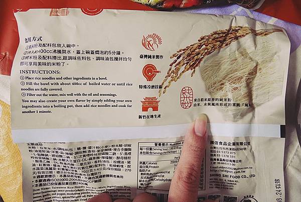 背前除了產品的資訊跟食用方式外還有關於米粉的介紹