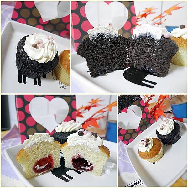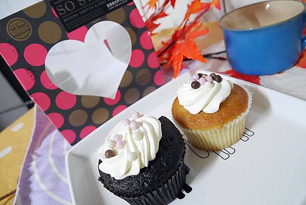 正面可以看到心型裡有兩個杯子蛋糕,重點很美型阿