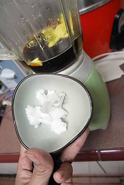 2.使用果汁機放入奶油、椰子油跟咖啡