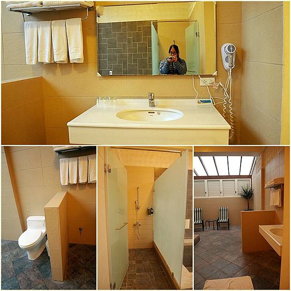 大大的洗手台左側用矮牆隔開廁所 ((但這樣馬桶還是開放式的阿!!!