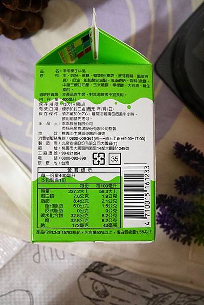 倒出來牛乳偏白可能跟添加的是椰漿粉有關係