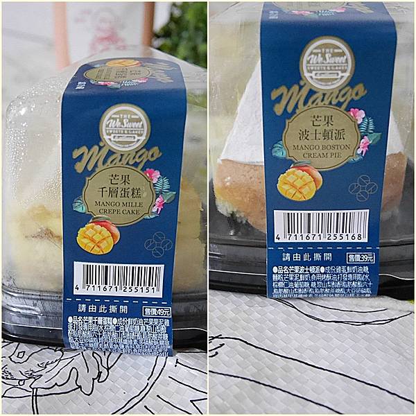 價格部分 芒果千層派 49/片 芒果波士頓派 39/片