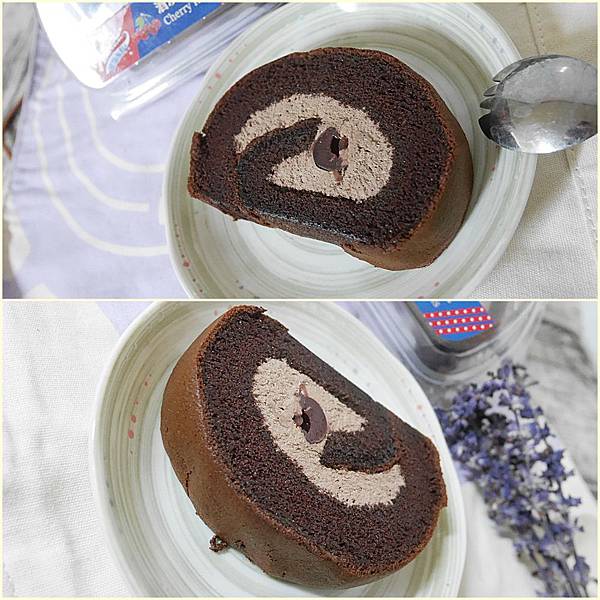乍看之下跟巧克力捲很像只是多了半顆酒漬櫻桃