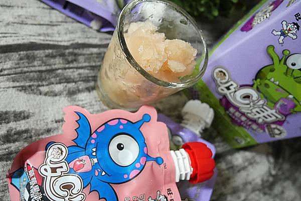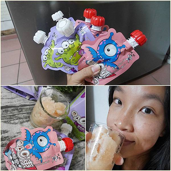 冷凍過後果汁變成了冰沙,果凍在結凍後還有點QQ的口感