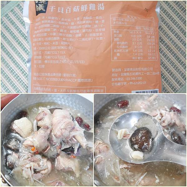 架上連人參燉雞湯都有,但我先選了干貝百菇鮮雞湯試水溫
