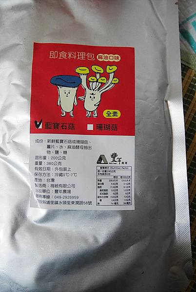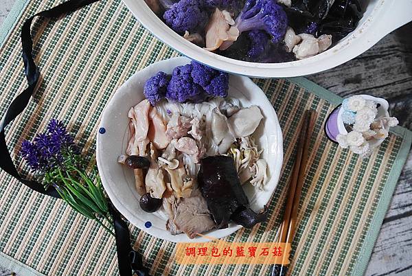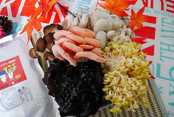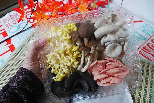 左上開始是常見的木耳、珊瑚菇,再來是跟料理包一樣的藍寶石菇