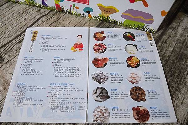 這次搭配的菇類如下,他每次會出五種不同菇類