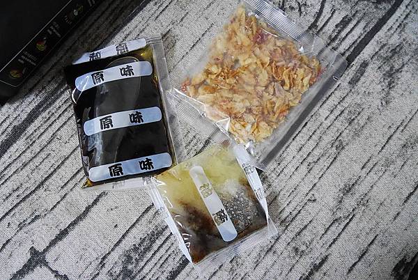 他跟油蔥包裝差不多,麵條都有盒子做保護加上三款醬包
