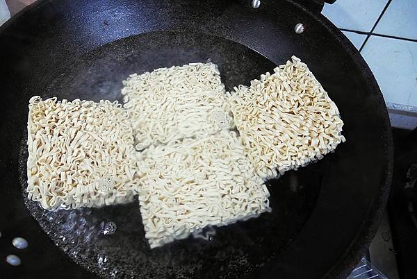 1.將水煮滾,放入麵條煮3-4分鐘後撈出