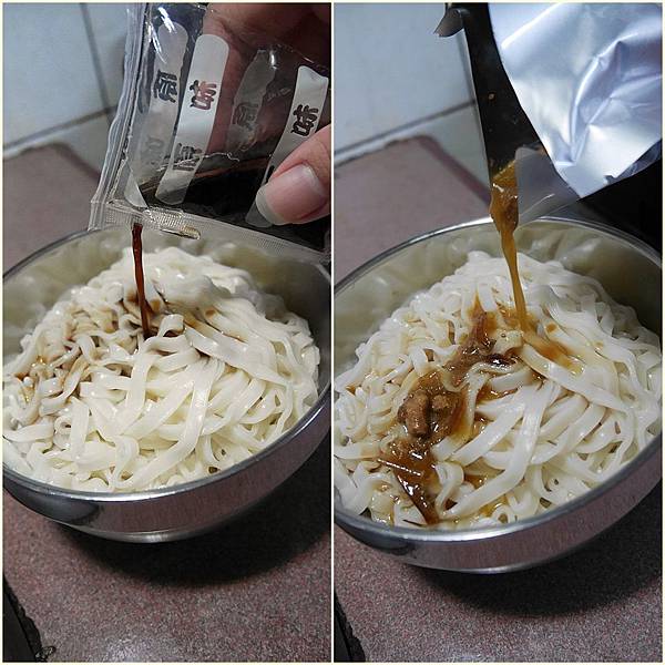 麵煮到自己喜歡的口感後撈起來,加入醬包跟肉燥調理包