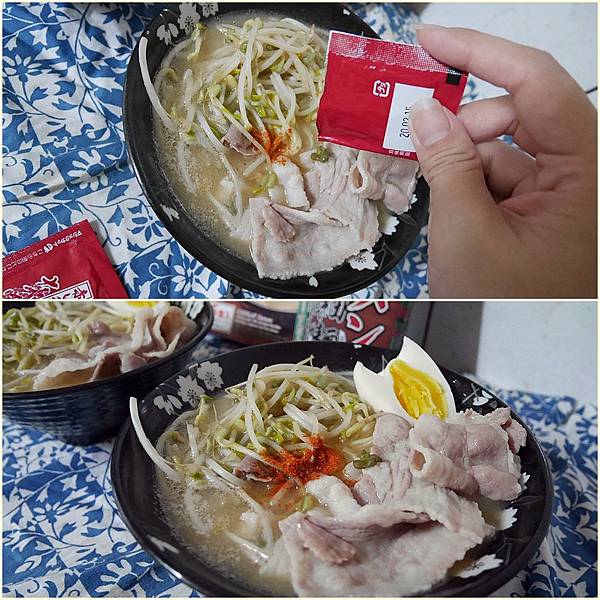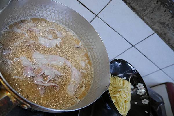 燙一下五花肉片跟豆芽菜加料,當然也可選擇加木耳絲或是蔥花等等