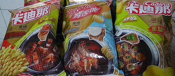 分別是卡迪納德州薯條、寶卡卡和卡迪那洋芋片三種不同口感