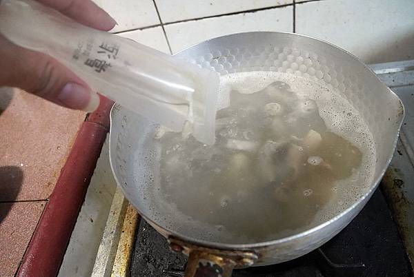 煮滾之後就可以拿出湯頭的另外一個重點當歸酒