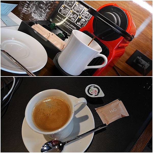 同一邊往前走,是罐裝水5瓶+膠囊咖啡機提供了兩款咖啡可以品嘗