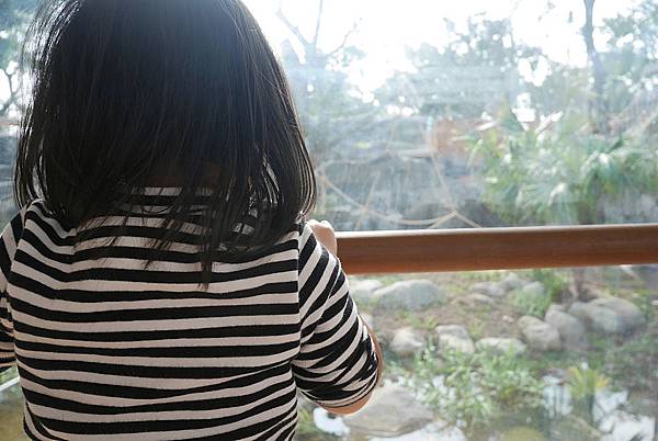 欄杆跟得不高,連妹妹都可以不用抱就看到長臂猿正在做甚麼
