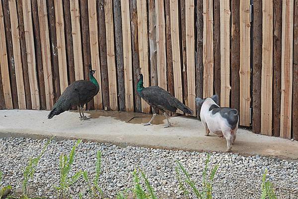 另外一邊則是孔雀跟小豬,狂奔的小豬讓小小朋友也跟著外頭跑喊著豬豬豬豬
