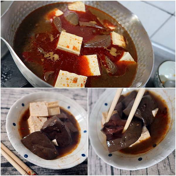 因為鴨血本身已經烹調過一次,怕煮太久口感變差所以不敢滾太久