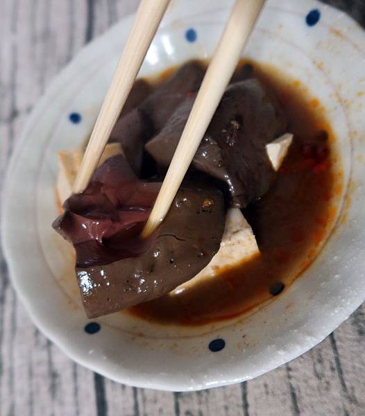 因為在包裝內浸泡,鴨血本身很入味有鹹度