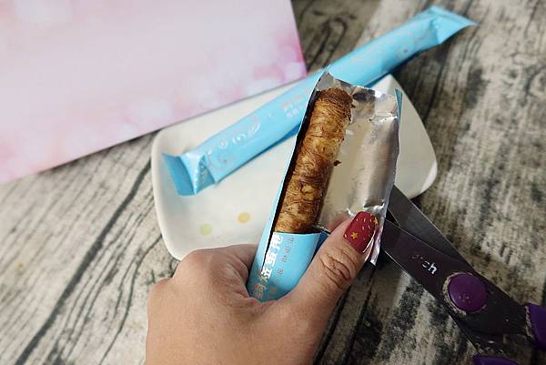 直接把包裝剪一半不沾手,也不用怕小朋友捏太大力碎光光