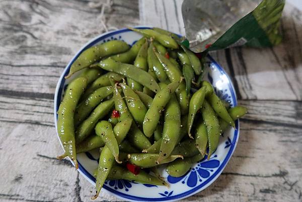 它口味還不錯很涮嘴,毛豆很飽仁毛豆莢裡面有點湯汁