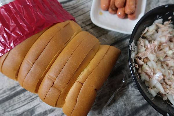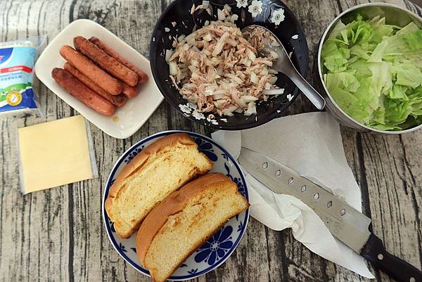 哥哥包的是生菜起士跟小熱狗,大人的洋蔥鮪魚加上生菜