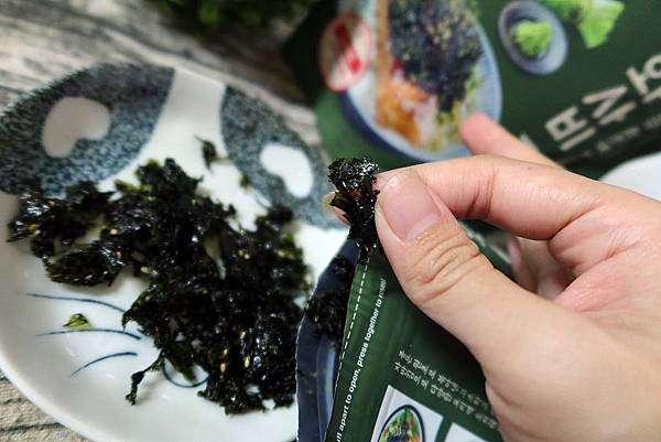 在微鹹的海苔酥裡可以嘗到一點芥末的刺激感
