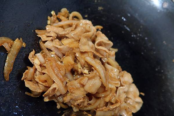 注意翻炒的速度不要讓洋蔥焦黑,洋蔥炒出香氣呈現半透明後加入肉片跟薑末