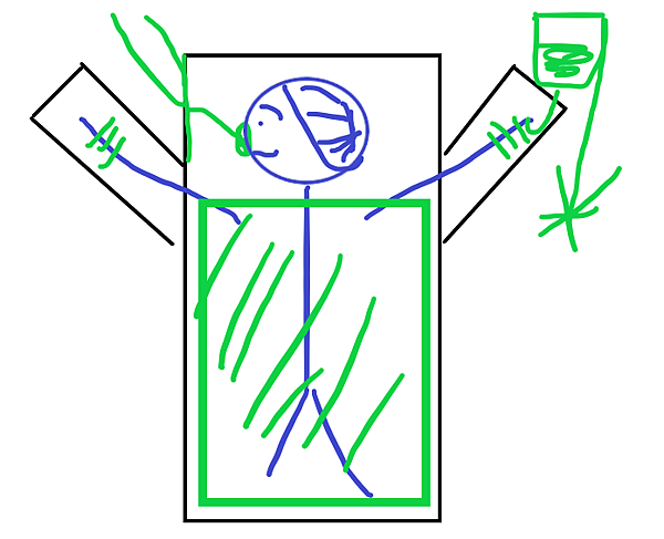 示意圖如下:黑色是床,紫色是人,綠色是醫療設備