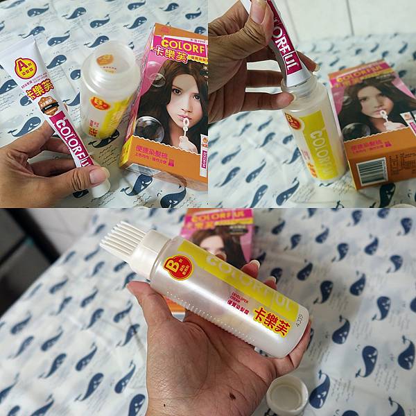 第一個步驟 - 把AB劑混和,染髮梳上頭有孔洞別搖的太大力