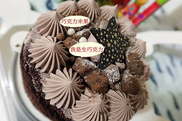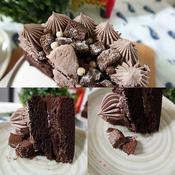 上層有小塊的生巧克力、巧克力球跟巧克力鮮奶油