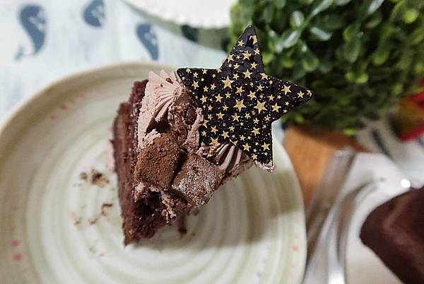 蛋糕柔軟濕潤帶點點巧克力的味道,搭配上夾心後便真的甜
