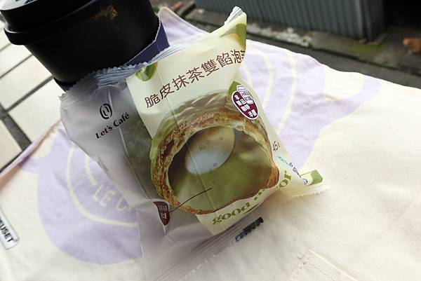 再來看看脆皮抹茶雙餡泡芙,魚媽很少在便利商店買泡芙