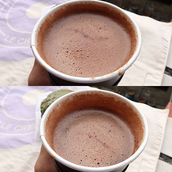 天氣還涼涼的,建議趁熱飲用巧克力才不會跟咖啡分離