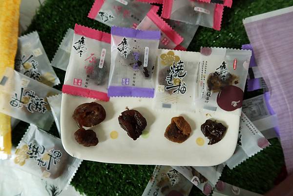 左起:原味無籽Q梅、紫蘇無籽Q梅、原味燒梅跟去籽日式咖啡Q梅餅