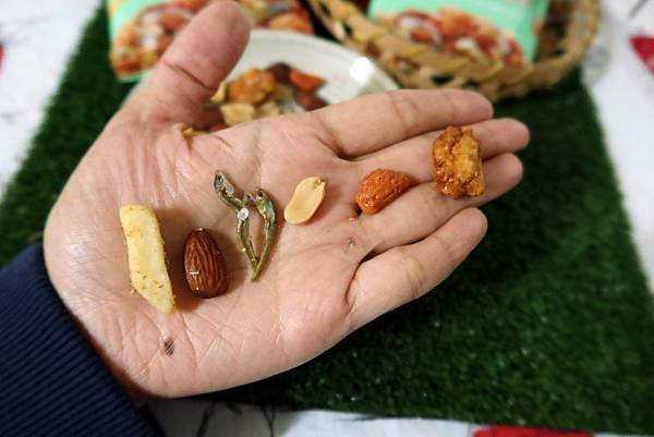 他有杏仁果、辣小魚、薯丁、花生、蝦味米果、醬油風味米果