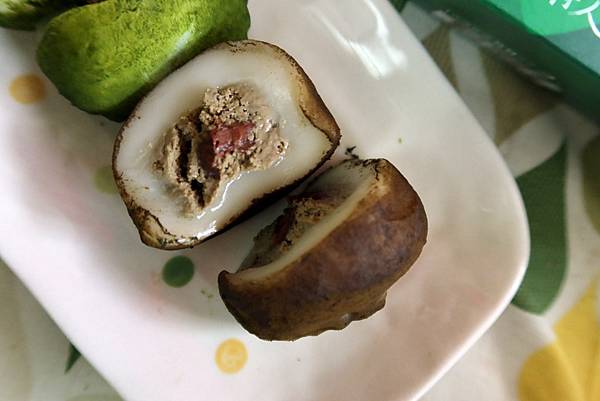 先吃抹茶口味他的大福皮很軟綿,沒有平常吃麻糬的這麼Q的感覺