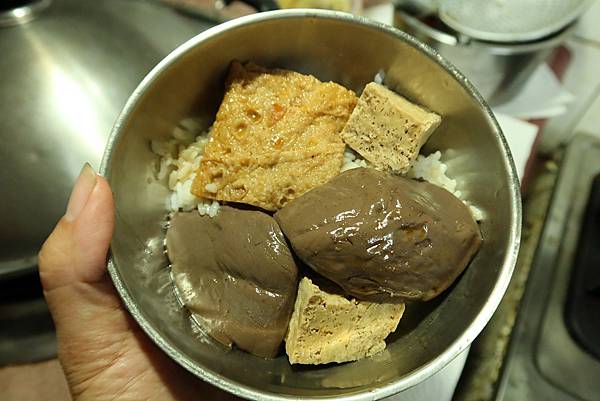 鴨血入味滋味鹹香帶著些許辣味,裡面夾帶著湯汁口感滑嫩