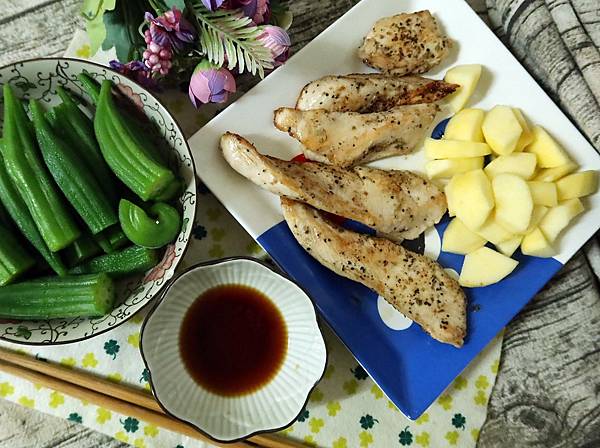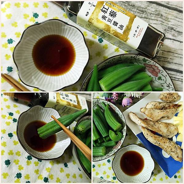 本身清爽淡雅的秋葵更能吃出紅藜黃豆醬油的鮮明