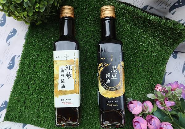 左邊的紅藜黃豆醬油:適合用於沾、拌、炒