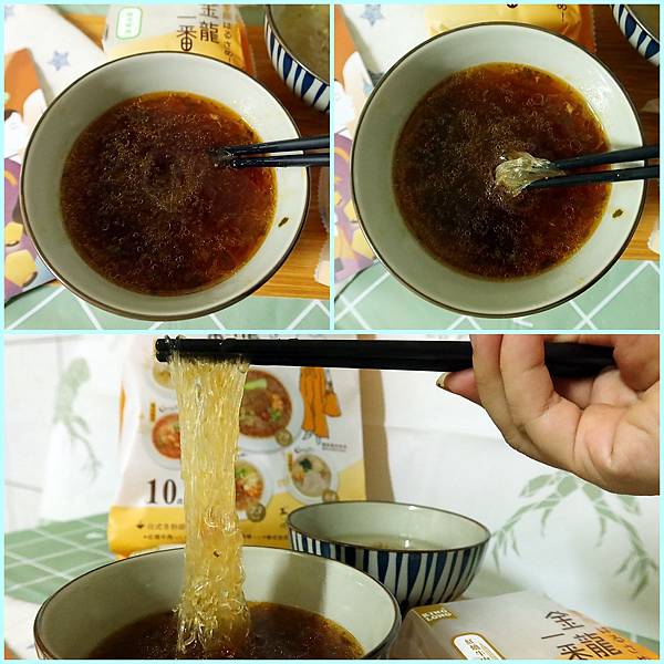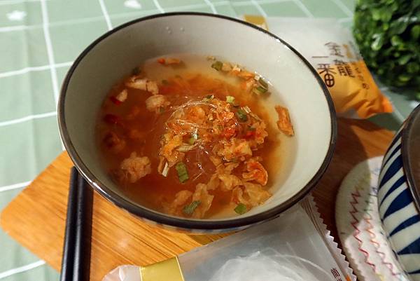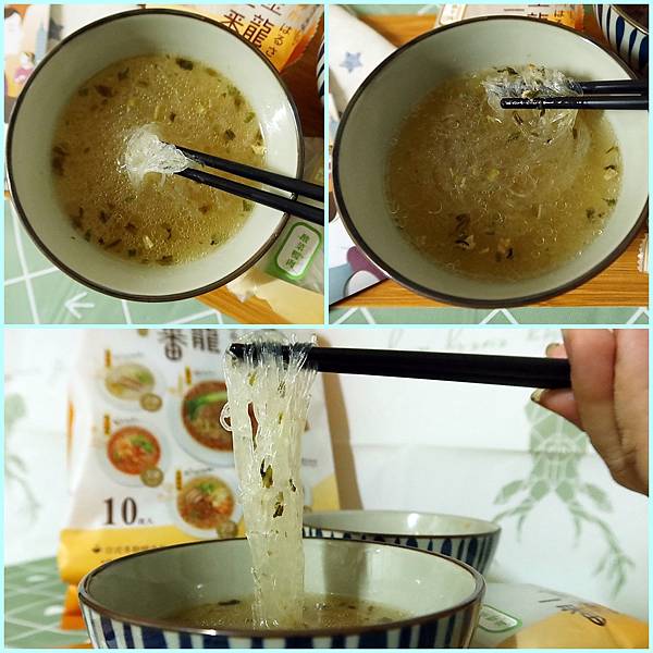 先把冬粉跟調味料包放入,再沖入160ML的熱水靜置3分鐘