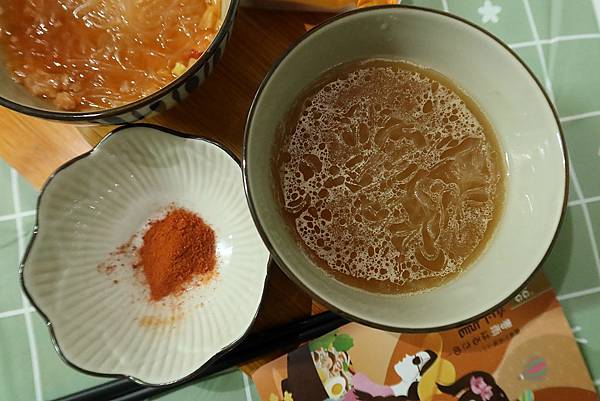 雖然搭配的是乾燥過的泡菜,但經過熱水浸泡後還是吃得出泡菜的脆口跟微酸感